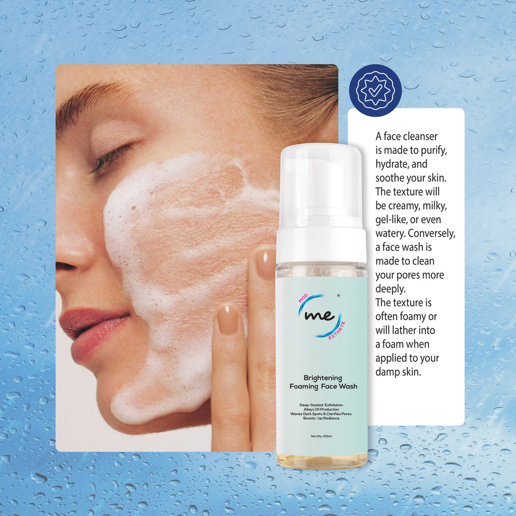Welcome to MOD ESTHETE ME, where radiant skin begins. Unveil a brighter, more luminous complexion with our Brightening Foam Face Wash. Infused with a potent blend of skin-loving ingredients, this foaming cleanser is your key to a refreshed and radiant look. Developed by experienced Dermatologist, ME brightening foaming face wash provides deep seated exfoliation. allays oil production, wanes dark spots and boosts up radiance