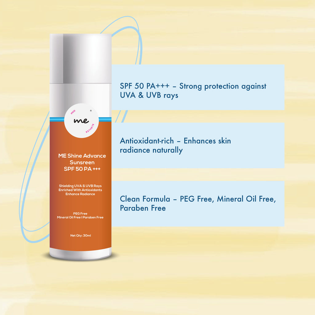 🌿 Nurturing Formula: Gentle on the skin, Me shine advance cares for your skin as it protects. Suitable for all skin types, including sensitive skin.