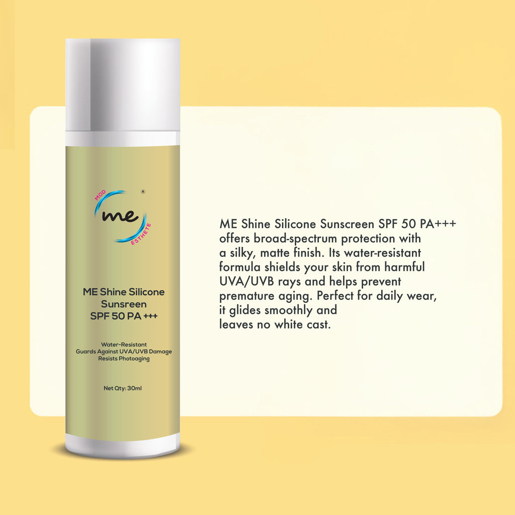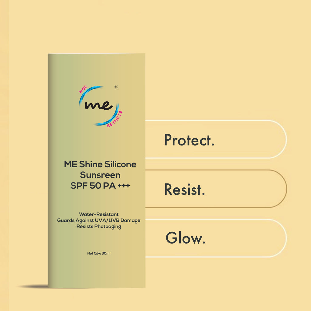 At MOD ESTHETE, we believe in more than just sun protection; we believe in enhancing your skin's health and radiance. Introducing our Anti ageing Sunscreen, a powerful shield against harmful UV rays enriched with avobenzone, resveratrol, green tea, and zinc oxide. Imparts a matte finish, fresh look through out the day. Its specially suitable for oily skin and humid climate. ME shine sunscreen is a broad spectrum sunscreen which protects skin damage from UV A and B rays. It is non sweaty and matte finish sunscreen gel which keeps skin fresh and sun protected for long time.